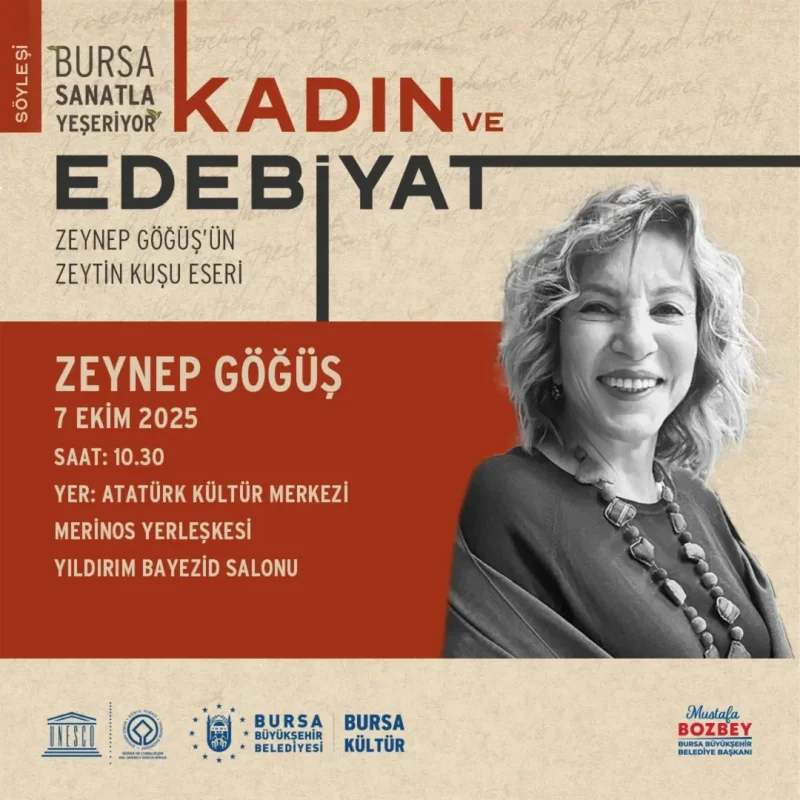 7 Ekim 2025 Salı günü saat 10.30’da Atatürk Kültür Merkezi, Merinos Yerleşkesi - Yıldırım Bayezid Salonu’nda gerçekleştirilecek etkinlikte, Zeynep Göğüş’ün “Zeytin Kuşu” eseri odağa alınacak.