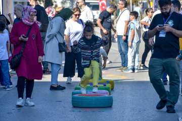 BURSA – Avrupa Hareketlilik Haftası etkinlikleri kapsamında araç trafiğine kapatılan Heykel Atatürk Caddesi’nde buluşan yüzlerce çocuk, birbirinden renkli oyunlar oynayıp caddeyi gülüşleriyle şenlendirdi.