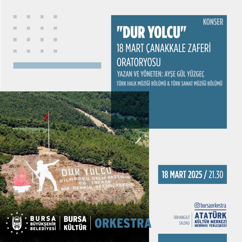 Bursa Büyükşehir Belediyesi Orkestra Şube Müdürlüğü Türk Halk Müziği ve Türk Sanat Müziği bölümleri tarafından düzenlenen bu özel gecede, Çanakkale Zaferi’ni hep birlikte anıyoruz.